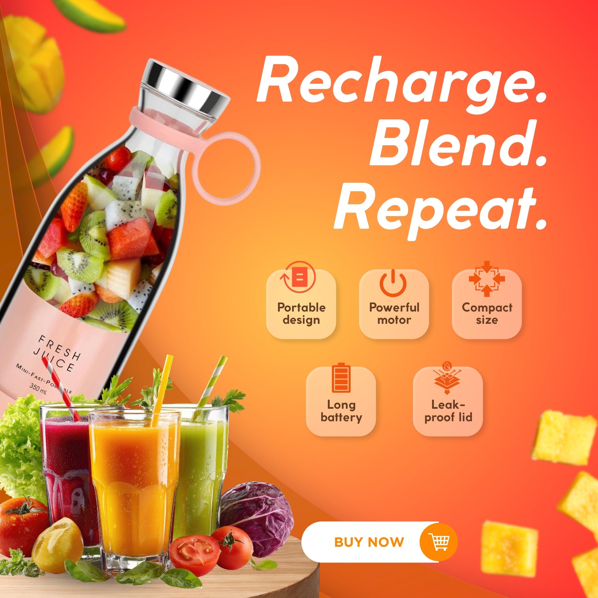 Experience the convenience and efficiency of our portable blender—perfect for quick shakes and nutritious smoothies.